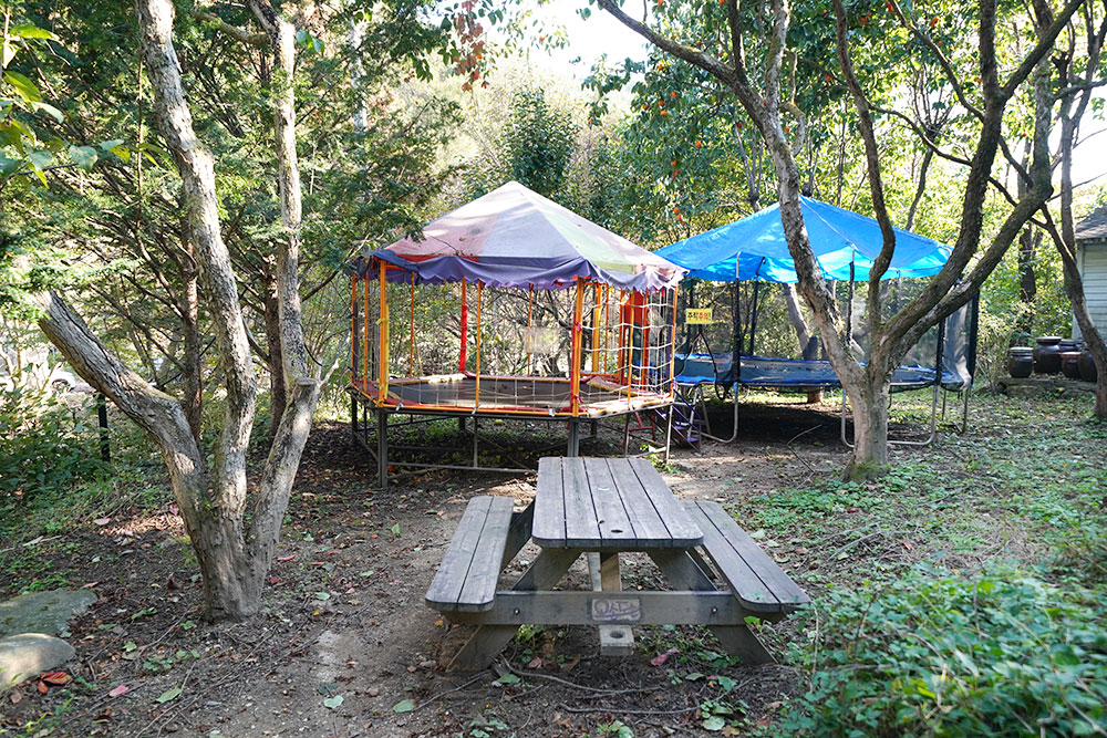 - 그네와 트렘폴린 시이소가 사이트 중간 중간에 설치되어 있어서 이용 가능 합니다.